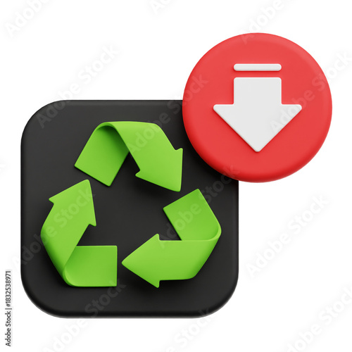 Decrease Recycle 3D Icon Isolated On The Transparent Background