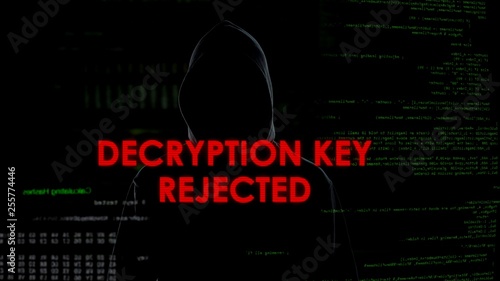 Decryption key rejected, unsuccessful attempt to hack account, coder in hoodie