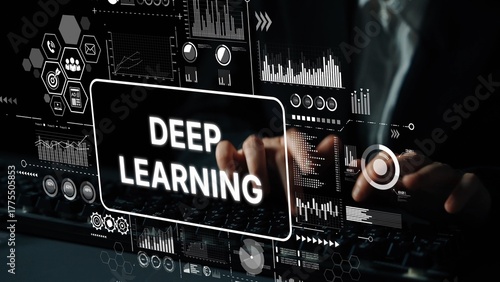 Deep Learning Concept with Data Visualization and Modern Technology in Background. Asymptotic smart data analytic.
