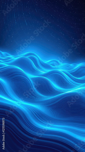 Deep space abstract background featuring an undulating blue line wave pattern with dimensional appearance., spatial relationships, deep space, optical illusions