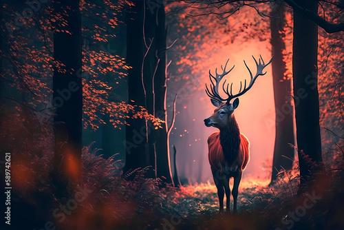 Deer in the forest. AI generation