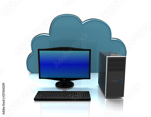 dektop pc and computing cloud . internet concept. 3d rendered illustration