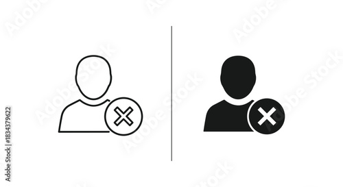 Delete User Profile Icons - Outline and Solid Vector Symbols