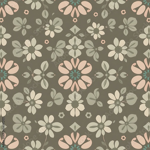 Delicate Floral Pattern: A charming and intricate pattern featuring delicate flowers and leaves in muted shades of pink, green, and beige against a soft brown background.