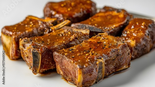 Delicious Glazed BBQ Beef Short Ribs Closeup