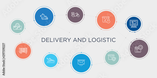 delivery and logistic 10 stroke points round design. checking, bar code, arrival, express mail round concept icons..