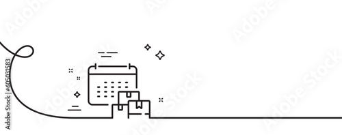 Delivery calendar line icon. Continuous one line with curl. Parcel logistic date sign. Express service symbol. Delivery calendar single outline ribbon. Loop curve pattern. Vector