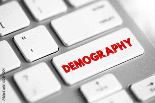 Demography text button on keyboard, concept background