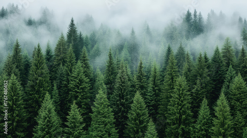 Dense mist in forest background creates cool, atmospheric, and calm scene