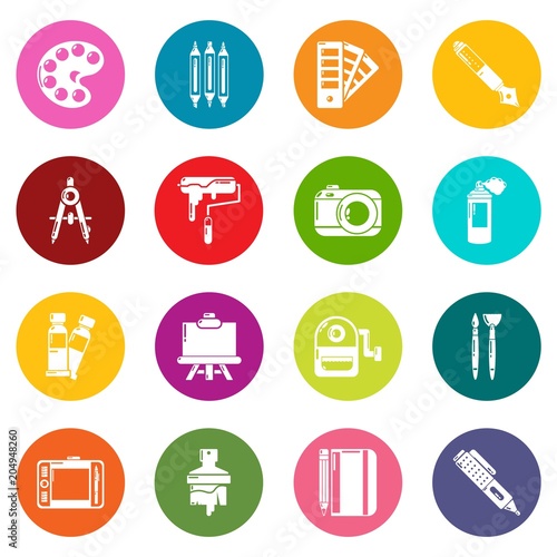 Design and drawing tools icons set colorful circles vector