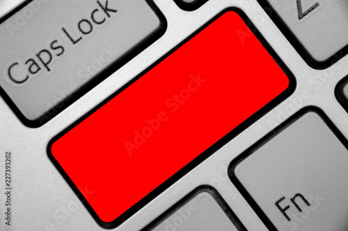 Design business concept Empty template copy space text for Ad website isolated. Keyboard red key Intention create computer computing reflection document
