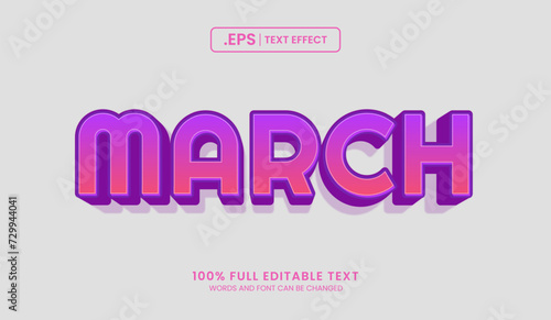 Design editable text effect, march 3d concept vector illustration