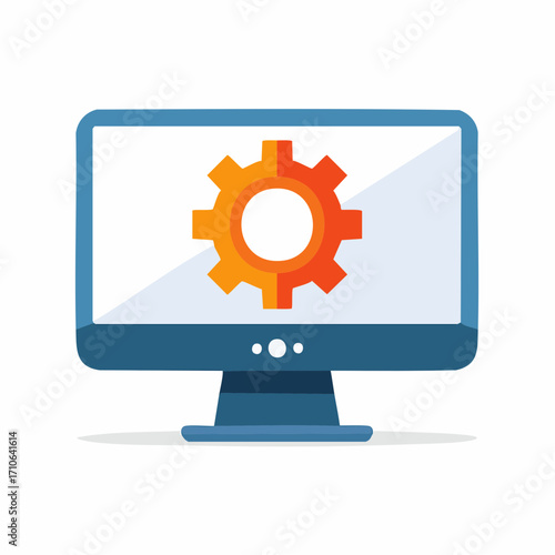 Desktop computer and settings gear, configuration and options, vector illustration