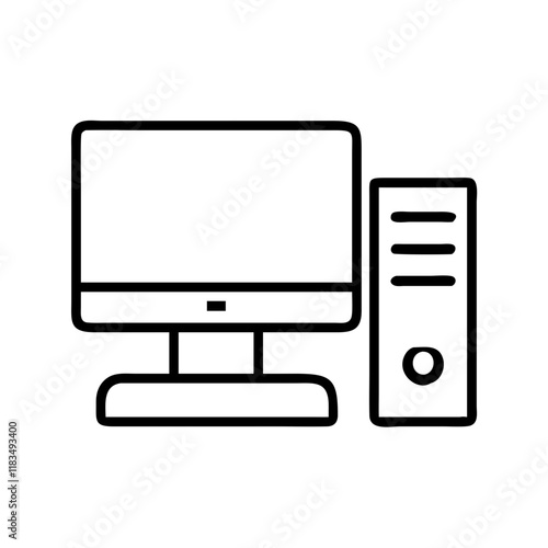 desktop computer icon, electronics line art, electronics vector - simple black line art icon of desktop computer perfect for logos, and electronics-themed designs.