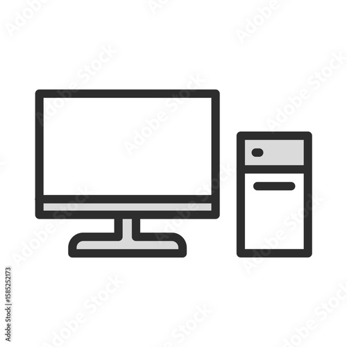 Desktop computer icon technology system drawing vector illustration