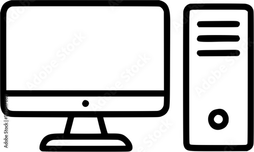 Desktop computer in outline icon style, Technology and IT theme.