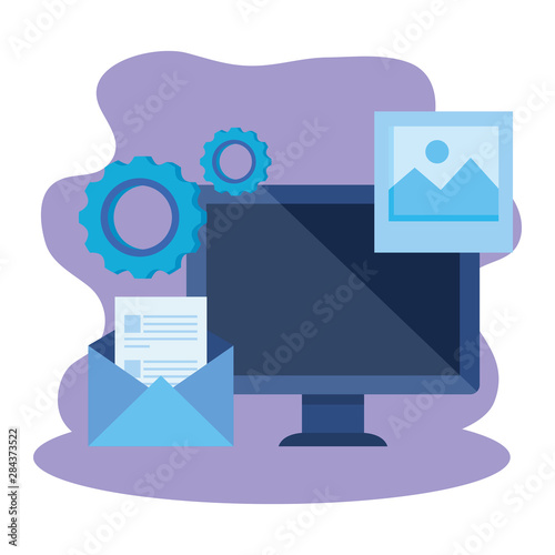desktop computer with envelope mail