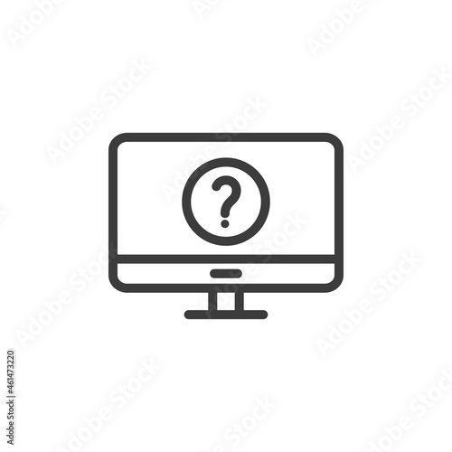 Desktop computer with info desk symbol. Computer with question mark symbol.