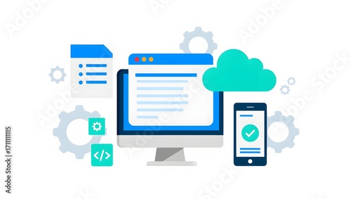 database, monitor, programming, three-dimensional, software, information, system, coding, network, code, desktop, website, storage, developer, screen, cyberspace, communication, development, computer, setup, isolated, notebook, interface, smart, laptop, connection, illustration, application, tablet, business, site, technology, engineering, online, modern, digital, web, symbol, cloud, concept, design, vector, mobile, icon, datum, phone, device, background, app