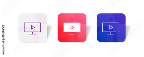 desktop video player pixel perfect icon set bundle in line, solid, glyph, 3d gradient style