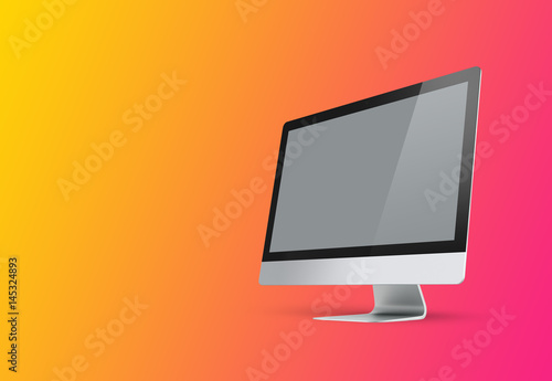 Desktop with blank computer screen. Mock up. 3d illustration