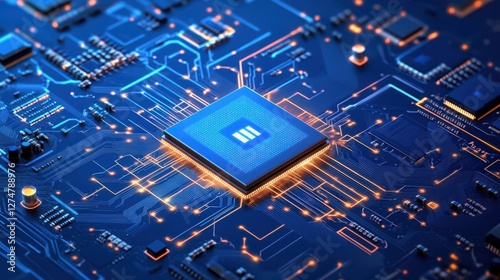 Detailed Circuit Board Close-up Featuring a Central Microprocessor Unit