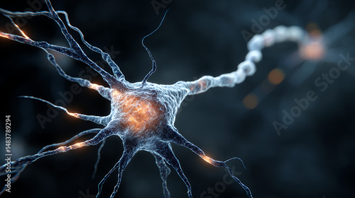 detailed neural network illustration with glowing synapses and branching neurons, digital representation of brain cells and biological connectivity for science and medical visualization