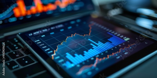 Detailed stock market chart on a digital tablet with financial news and market updates, symbolizing global finance and economic trends
