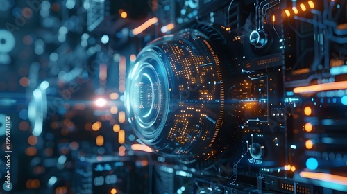 Detailed texture and design of a futuristic quantum cryptography device enhancing cybersecurity and data protection in a high tech digital world of the future