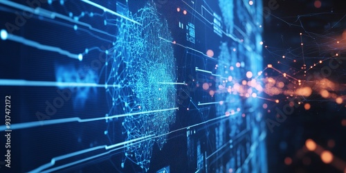 Detailed view of a computer screen with cognitive computing models running, complex patterns and data interpretation in progress