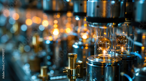 Detailed view of a machine covered in bright lights, showcasing a complex network of wires and components
