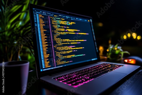 Detailed view of a programming interface on a computer screen, capturing code in fine detail