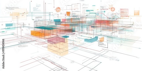 Detailed view of a software architecture diagram, multiple layers and components interconnected with clear annotations for system design.