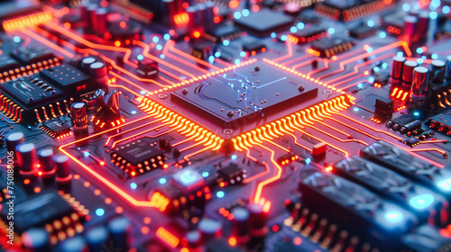 Detailed view of a technology circuit board, computing and engineering concept, macro electronics background
