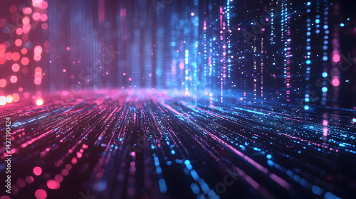 developer efficiency in programming. Abstract digital light patterns in vibrant colors.