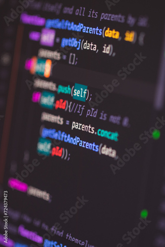 Developer screen with colored website programming code