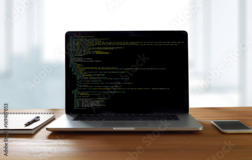 Developer Team Working Laptop Computer Mobile Application Softwareand Web Design Online Technology Content script to display