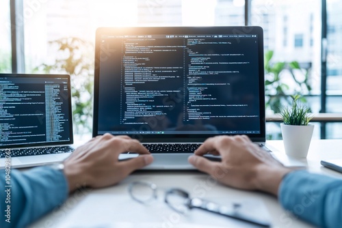 Developer testing website responsiveness on multiple devices, cross-browser compatibility, user experience optimization.