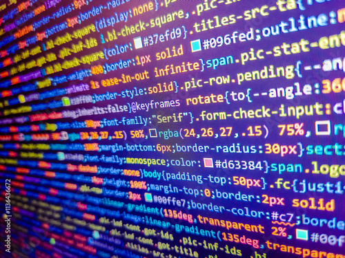 Developer work. Abstract background for search job. Ad with work for developer. Big overload blockchain data. Background image. Abstract code background. Blue php. Coding concept. Binary code.