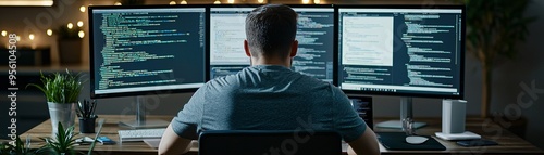 Developer working on a website with multiple tabs open, multitasking in web development, efficient coding setup.