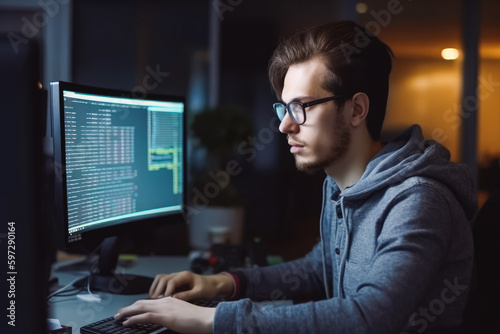 Developing programmer. Development website design and computer work. Programmer working on computer. Generative AI
