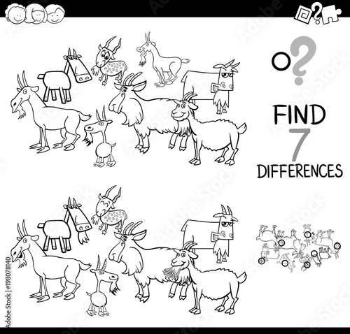 differences game with farm goats coloring book