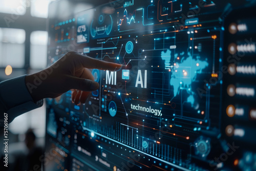 Digital AI learning growth graphs and financial data with hologram chart on the virtual screen