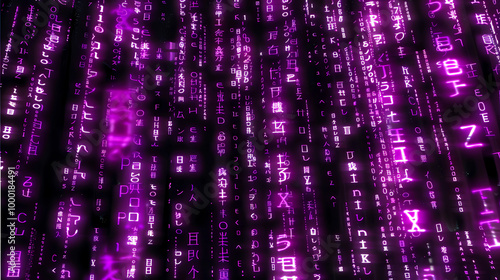 digital artwork that features lines of computer code cascading down in a matrix-like effect. deep background