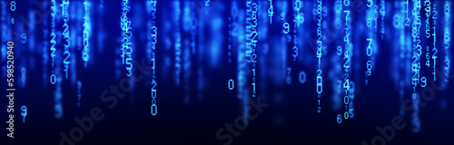 Digital background blue matrix. Coding or hacking concept. Flow of random numbers. 3D rendering.
