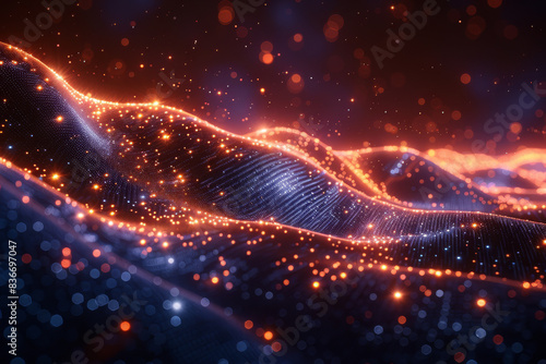 Digital background for tech, AI, neural networks, data, audio, graphics