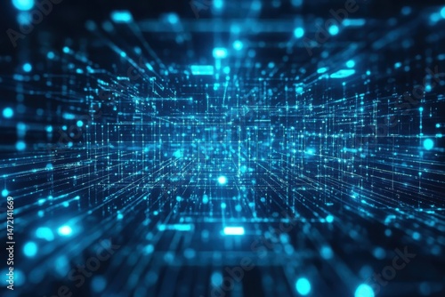 Digital background illustrating neural networks, artificial intelligence, data encryption, and science communication