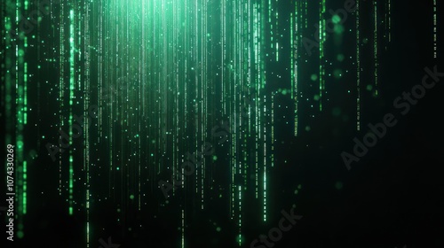 Digital background with a matrix of green code scrolling vertically on a black screen, creating a futuristic cyber feel