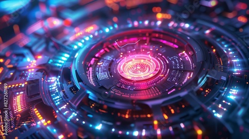 Digital binary as engine core, top view Engine core glowing with flowing binary code core of technology digital binary as object Tetradic color scheme