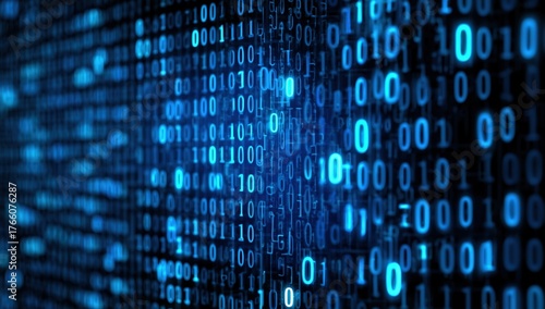 digital binary code background with blue glowing numbers and computer keyboard keys the background is composed of a grid of binary digits Generative AI